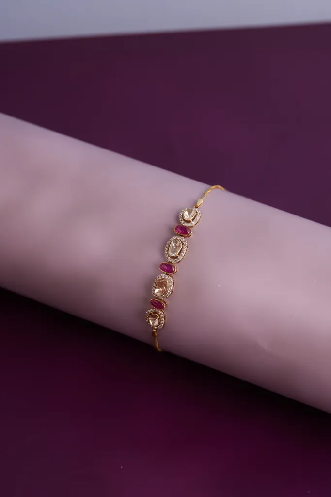 A slender gold bracelet brings soft movement and shine to her wrist. It complements watches and other accessories while maintaining a refined aesthetic. Lightweight, everyday-wear jewellery like this is luxurious yet easy to carry throughout the day.