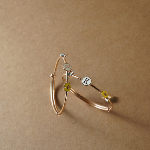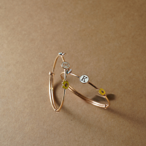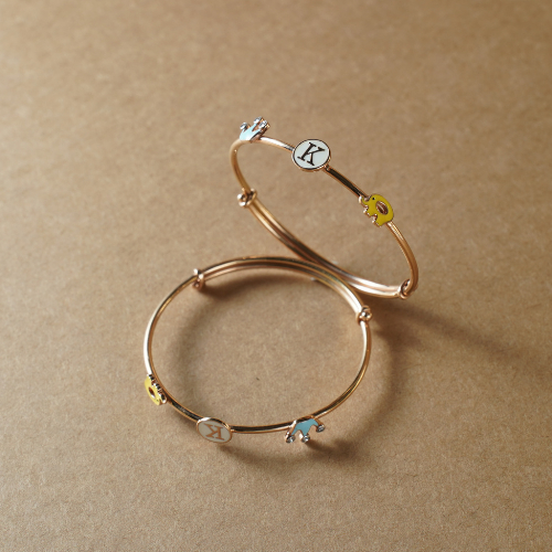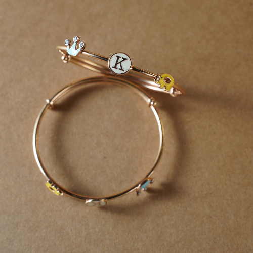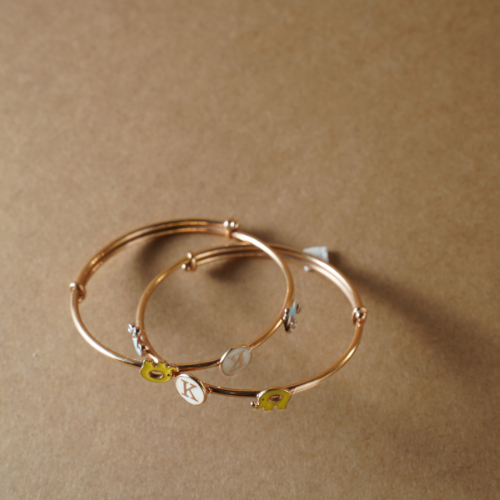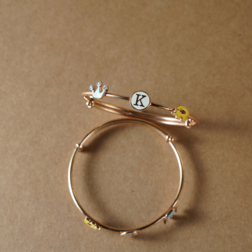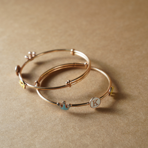 Be the first to review “18KT Gold Adjustable Kada for Kids with Elephant, Crown & K Letter Charms KR18/89”