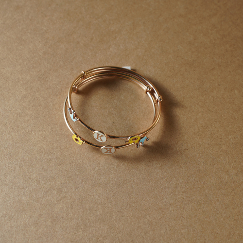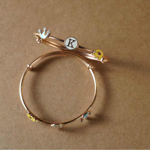 Home Kara 18KT Gold Adjustable Kada for Kids with Elephant, Crown & K Letter Charms KR18/89
