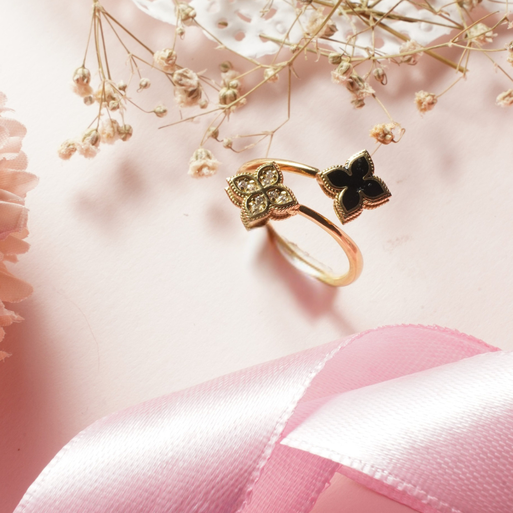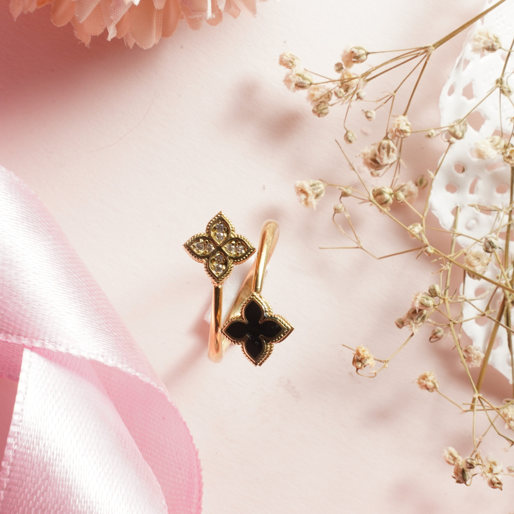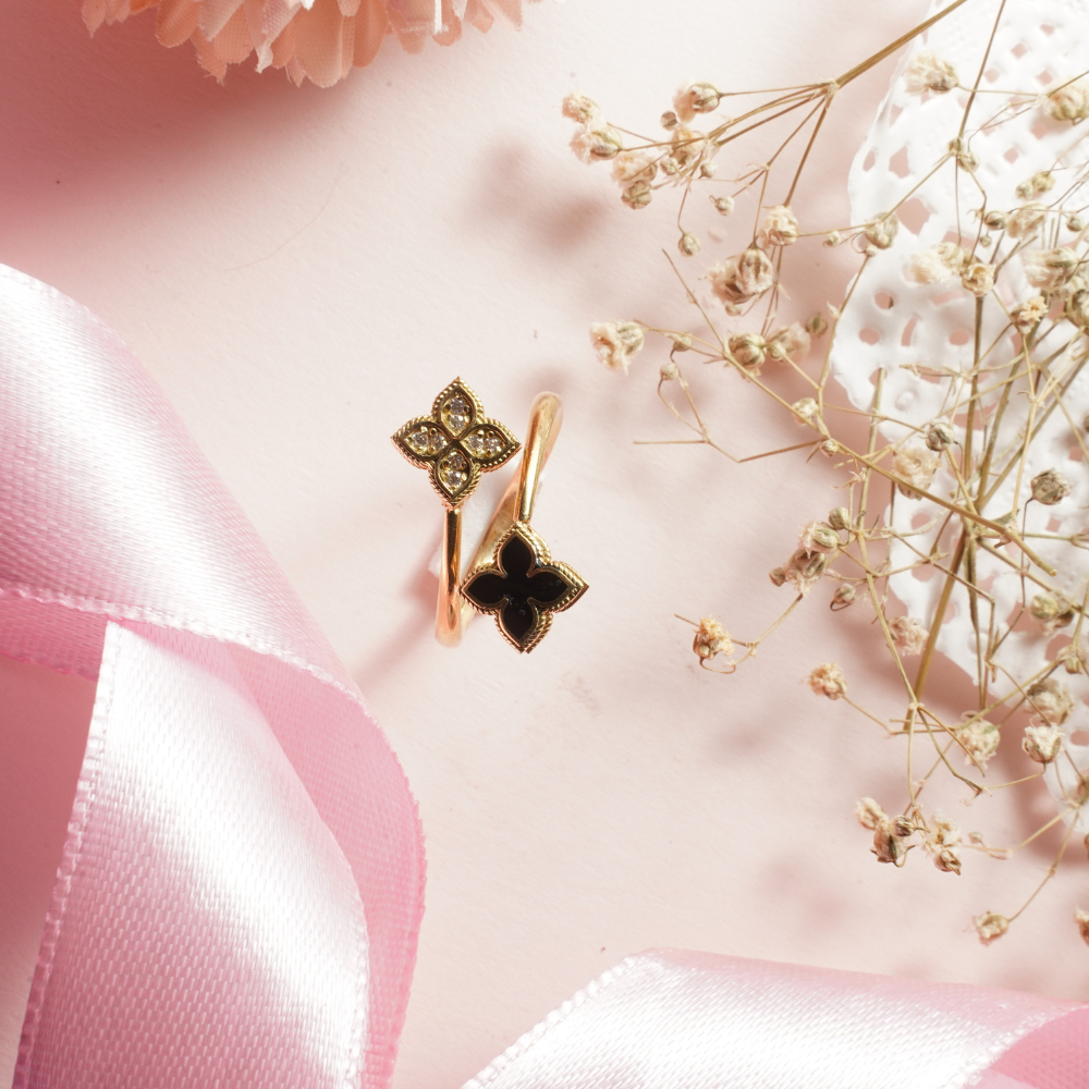 18KT Yellow Gold Princess Flower Open Center Adjustable Ring RL18/1959