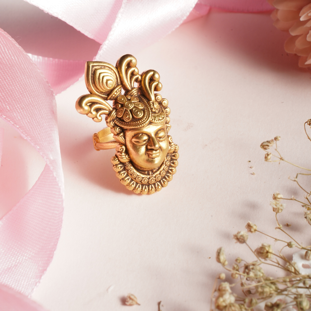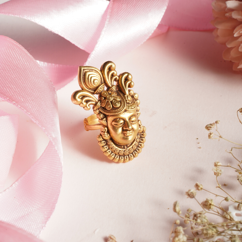 22KT Yellow Gold Shree Nath Ji Temple Ring – Antique Adjustable Design RL22/2502