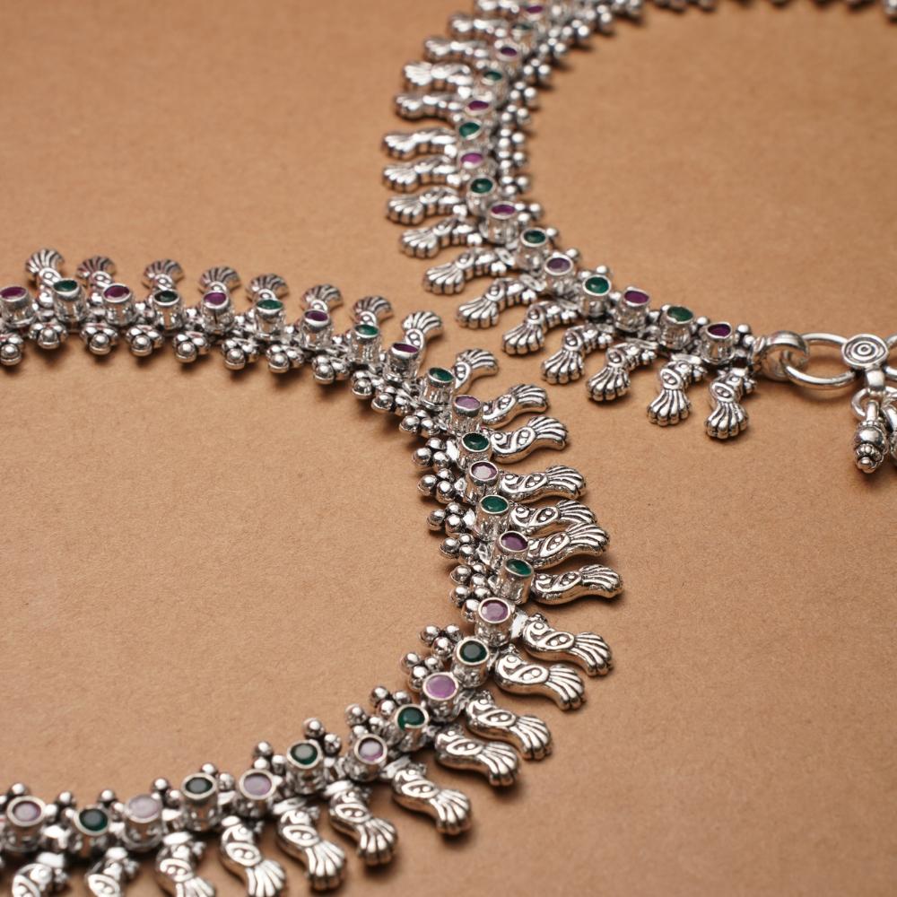 Designed to sit gracefully on the ankle, this anklet blends ethnic beauty with contemporary style—perfect for festive occasions, weddings, or everyday elegance. The high-quality sterling silver ensures lasting shine, while the Meenakari work adds a pop of colour and cultural richness.