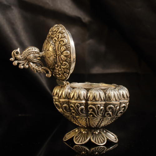 925 Silver Sindoor Dani with Lid – Peacock Motif Design SDSS/6