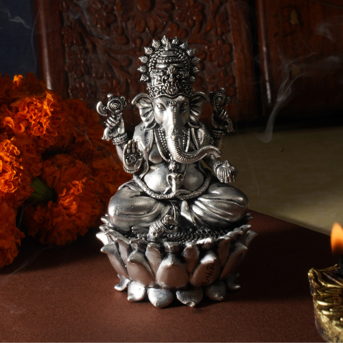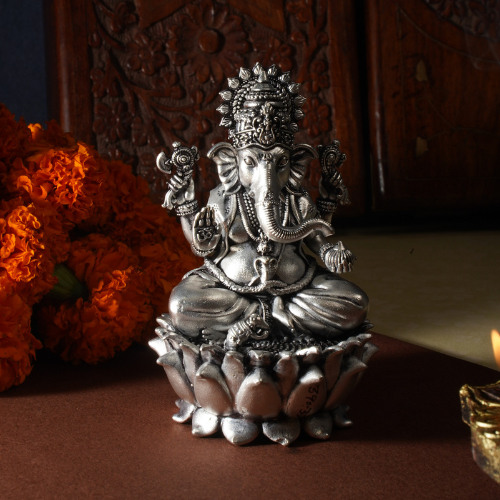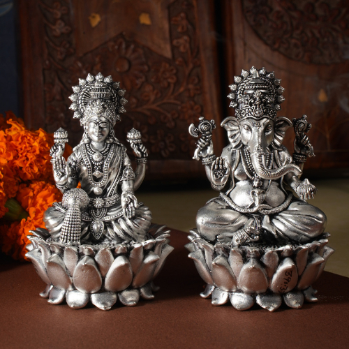 Home SILVER 925 Sterling Silver Laxmi Ganesha Statues Matte Antique Finish Diwali Pooja & Gifting MRTSS/393