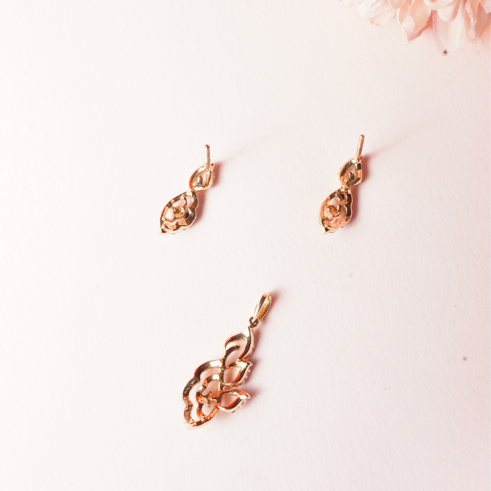 14kt Gold Diamond Pendant With Earrings DLS14/80
