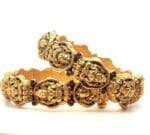 Discover timeless beauty with our antique 22 kt Gold Temple Bangle. Crafted with intricate details and a stunning oxidised finish, this bangle combines traditional elegance with modern flair.