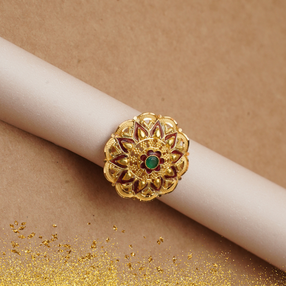 22kt Yellow Gold Ring With Green Stones RL22/1960